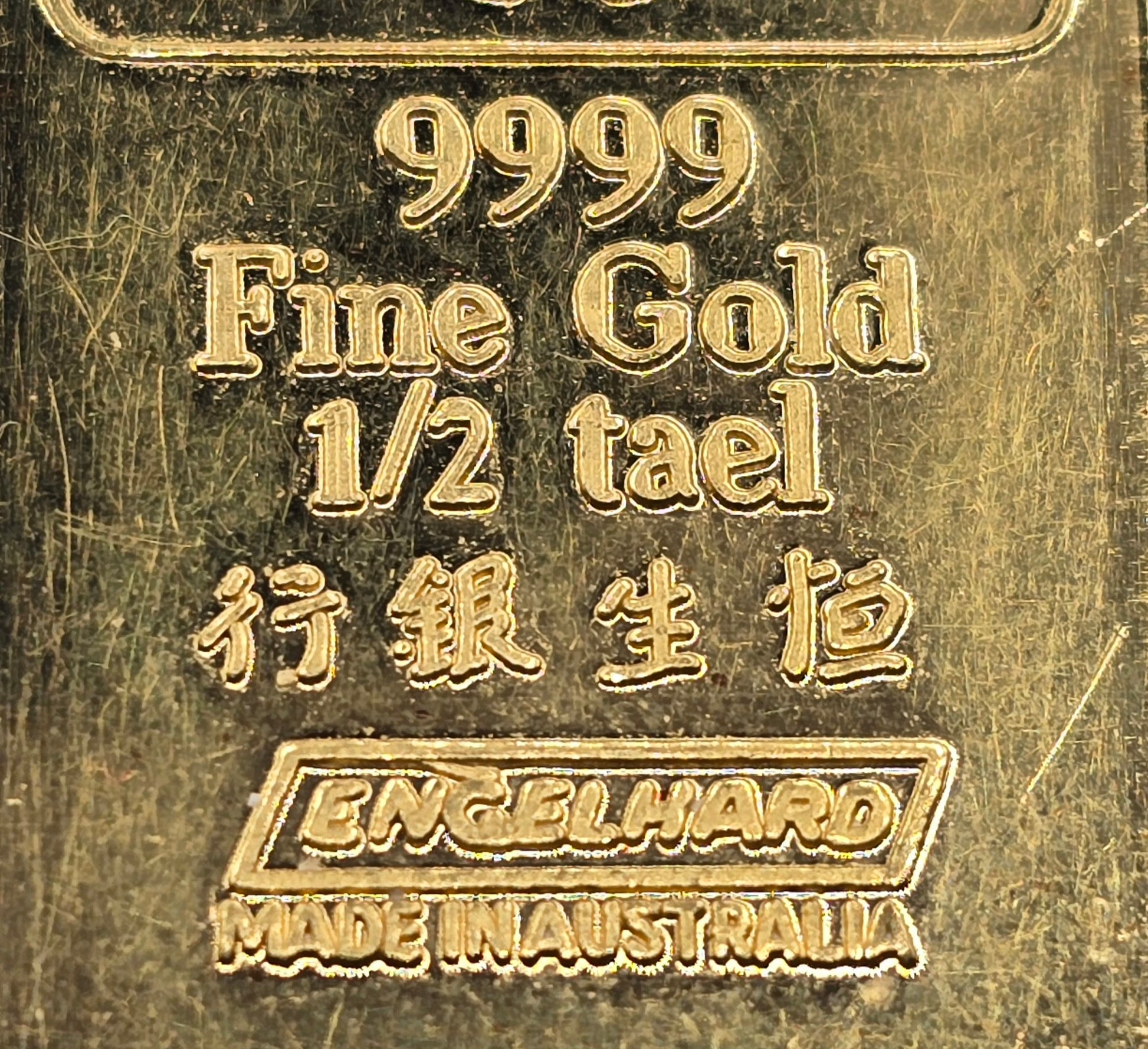 1/2 tael (18.75g) Engelhard Australia gold bar (bank deposit only)